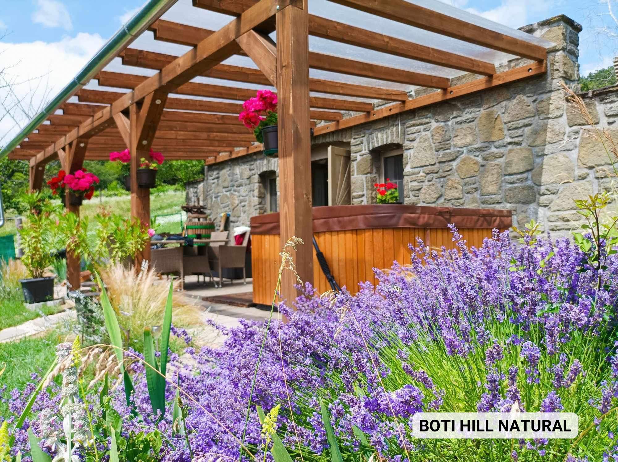 A vendégház Tihany központjától kissé távolabb eső domboldalon, igényesen gondozott szőlősorok között bujkál. A Boti Hill kuckója Tihany egyik varázslata, egy autentikus élmény, lakberendezése ötletes, elegáns, a balatoni kilátás pedig lélegzetelállító. A vendégház kandallóval és jakuzzival felszerelt, minden évszakban nagy szeretettel várja lakóit és kisállataikat.