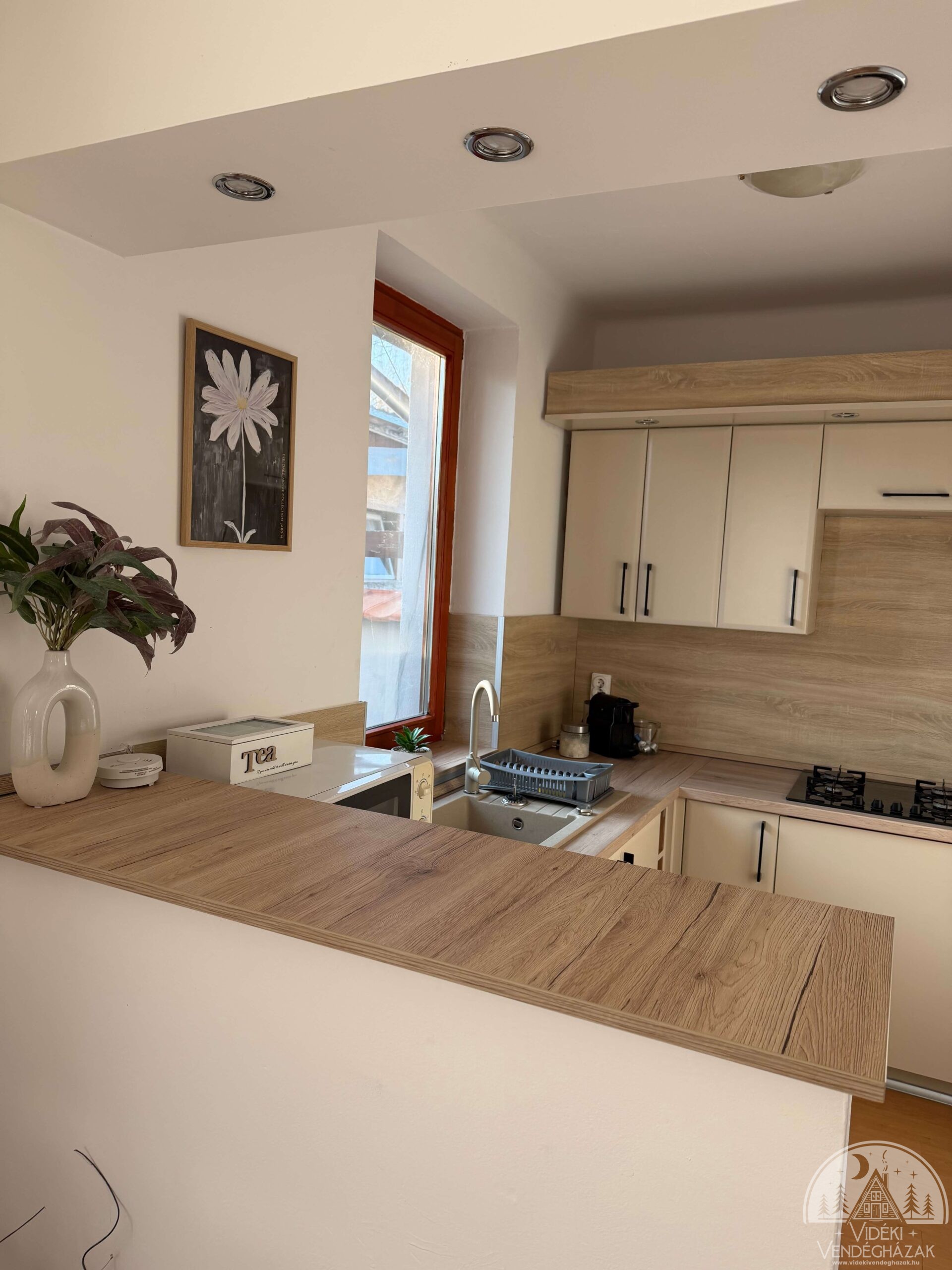 A kerti sütés-főzéshez minden szükséges eszközt biztosítunk (grillezés, szalonnasütés, bográcsozás). De ha nem szeretnétek kint főzni, akkor a konyháink is teljesen felszereltek. Minden házban Nespresso kávégép található, amihez a kapszulát mi biztosítjuk, de ha inkább egy teát innátok ahhoz is megtaláltok mindent a konyhában.