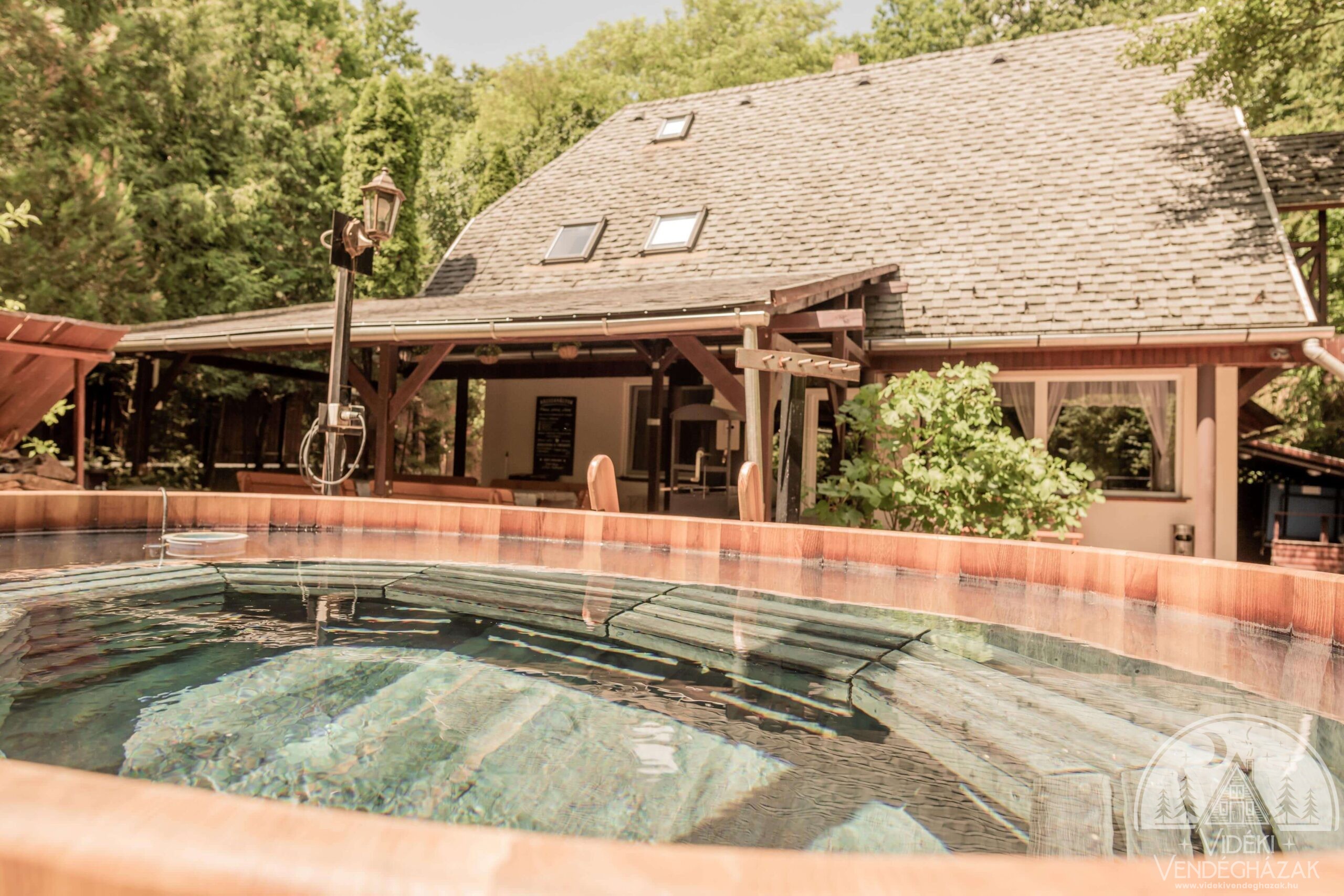dézsafürdő, mozi szoba, borospince, kemence, grillező, csocsó, pingpong pedig maximális