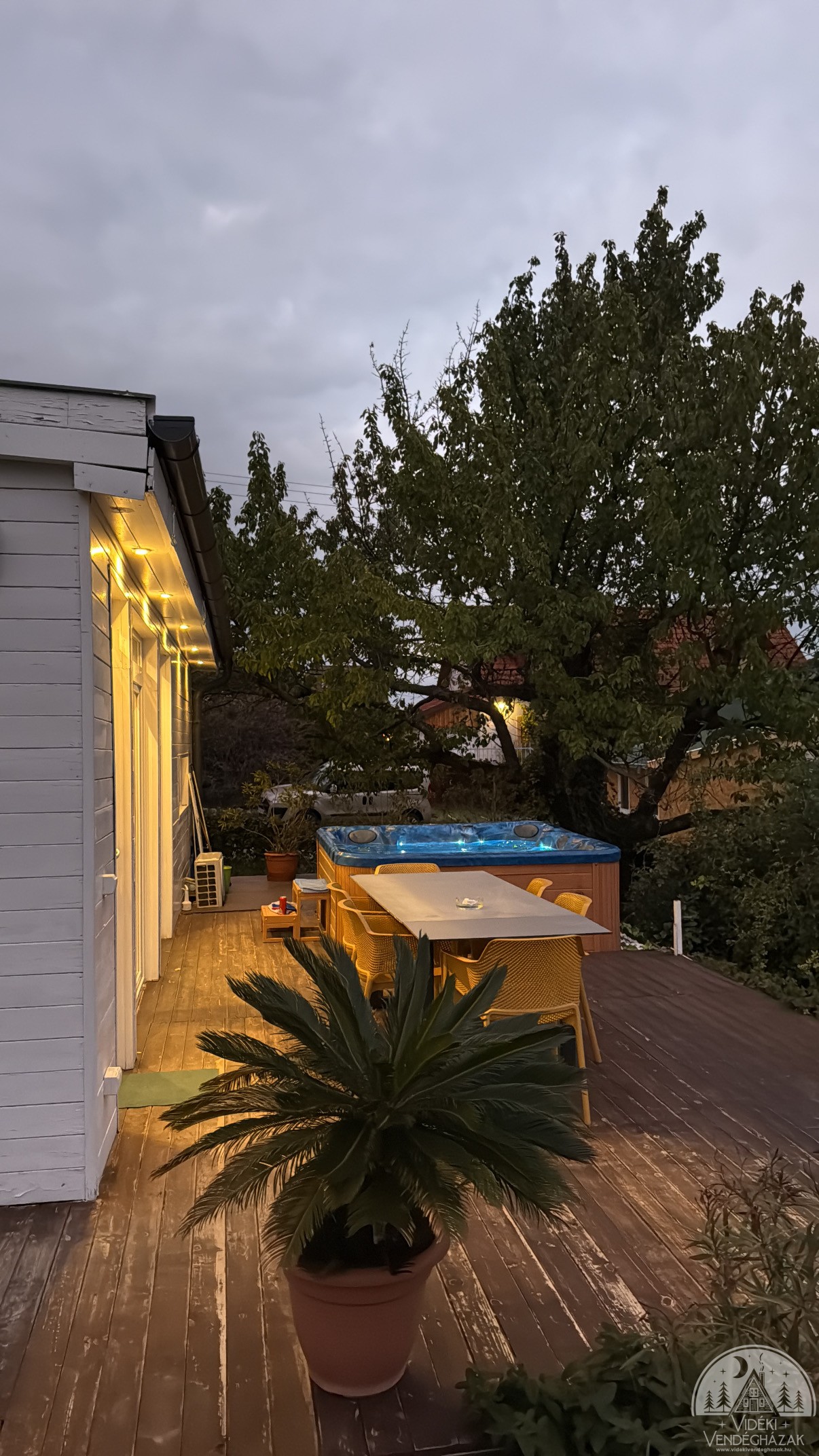 A tágas teraszról naplementét nézhetsz a jakuzziból, vagy közösen grillezhettek, bográcsozhattok a kertben. 🔥