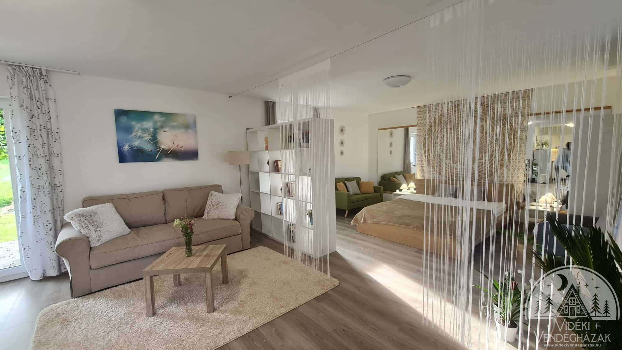 A Vendéglak egy 60 m2-es különálló apartman 4 férőhellyel, tágas térrel, fürdőszobával és egy saját terasszal.