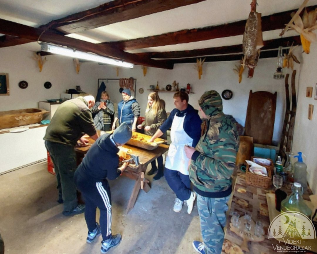 🌥 Másnap megkezdődik a disznótor és feldolgozás, hagyományos falusi módszerekkel. Aki szeretne, minden folyamatban részt vehet!