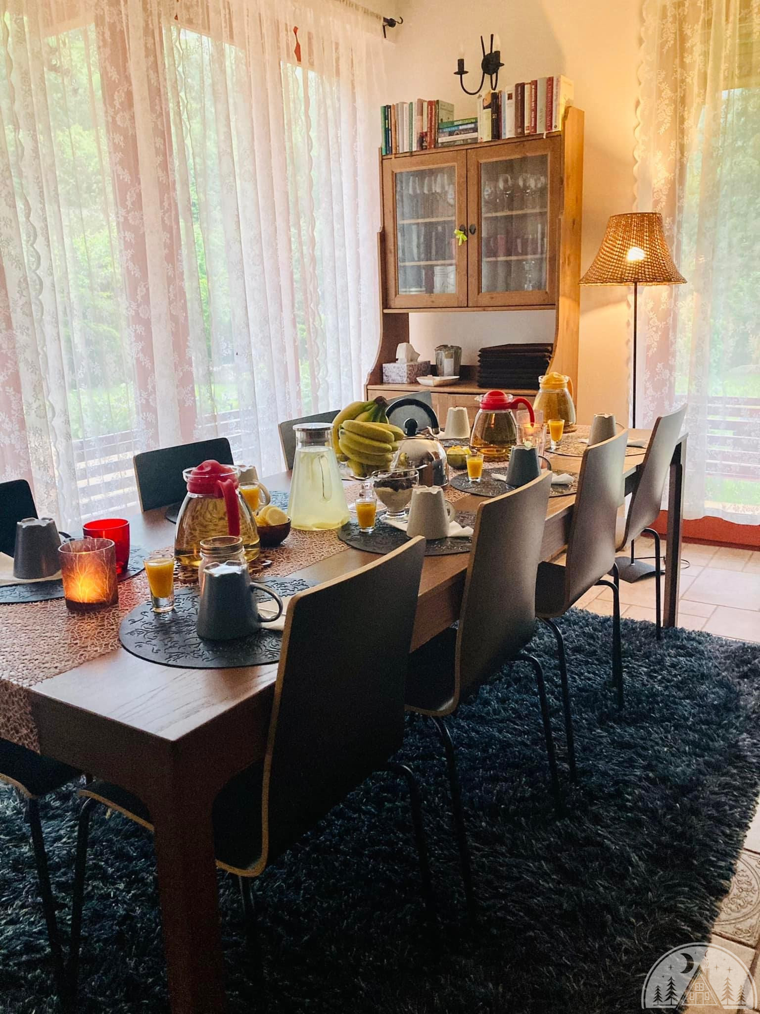 Szeretnénk bemutatkozni és megmutatkozni. Visegrádon, a Bioszféra Rezervátum, Natura 2000, kiemelt természetvédelmi területén található vendégházunk, gyönyörű erdei környezetben. 8-10 fő számára tudunk kényelmes elhelyezést biztosítani, közösségi teret adni. Van 4 szobák, 2-2 ággyal, és 2 vendégágyunk) egy 4 fős hibrid szaunánk, kozmetikánk, jól felszerelt konyhánk, étkezőnk, nagy teraszunk, gyönyörű kertünk és sok nálunk fészkelő madarunk, mókusunk🪹🪶🐦⬛🦉🐦🐿️💚🤗. Örömmel adjuk ki házunk külsős szervezésű programokhoz, táborokhoz, családi nyaralásra, ünnepekre, esküvőkre, leány-, és legénybúcsúkra.💚🥰 Minimum 3 nap foglalható, h-cs 90ezer Ft/nap, p-v 110ezer Ft/ nap.