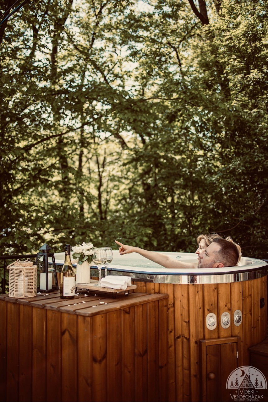 Lombkorona szinten levő erdei vadász villánk ideális hely az elvonuláshoz, feltöltődéshez, és a kikapcsolódáshoz. Madárcsicsergésre ébredve, a friss erdei levegőn tudjátok a reggeli kávét a teraszon meginni, miközben mókusok ugrálnak az ágakon. A felső teraszon levő hydromasszázsos dézsafürdőben ülve a tölgyerdő ölelésében gyönyörködhettek az erdei környezetben. Az infraszaunával érdemes kombinálni, hiszen kitűnő immunerősítő, méregtelenítő és stresszoldó hatása van.Ajánljuk a közeli kedvelt kirándulóhelyeket, kilátókat, a szomszéd utcából több két túra útvonal nyílik. A királyréti erdei kisvasút megállója pár sétatávolságra található. Biciklire pattanva pedig 10 perc alatt a Dunapartra érhettek, és bejárhatjátok a csodás partot, a naplementében gyönyörködve.