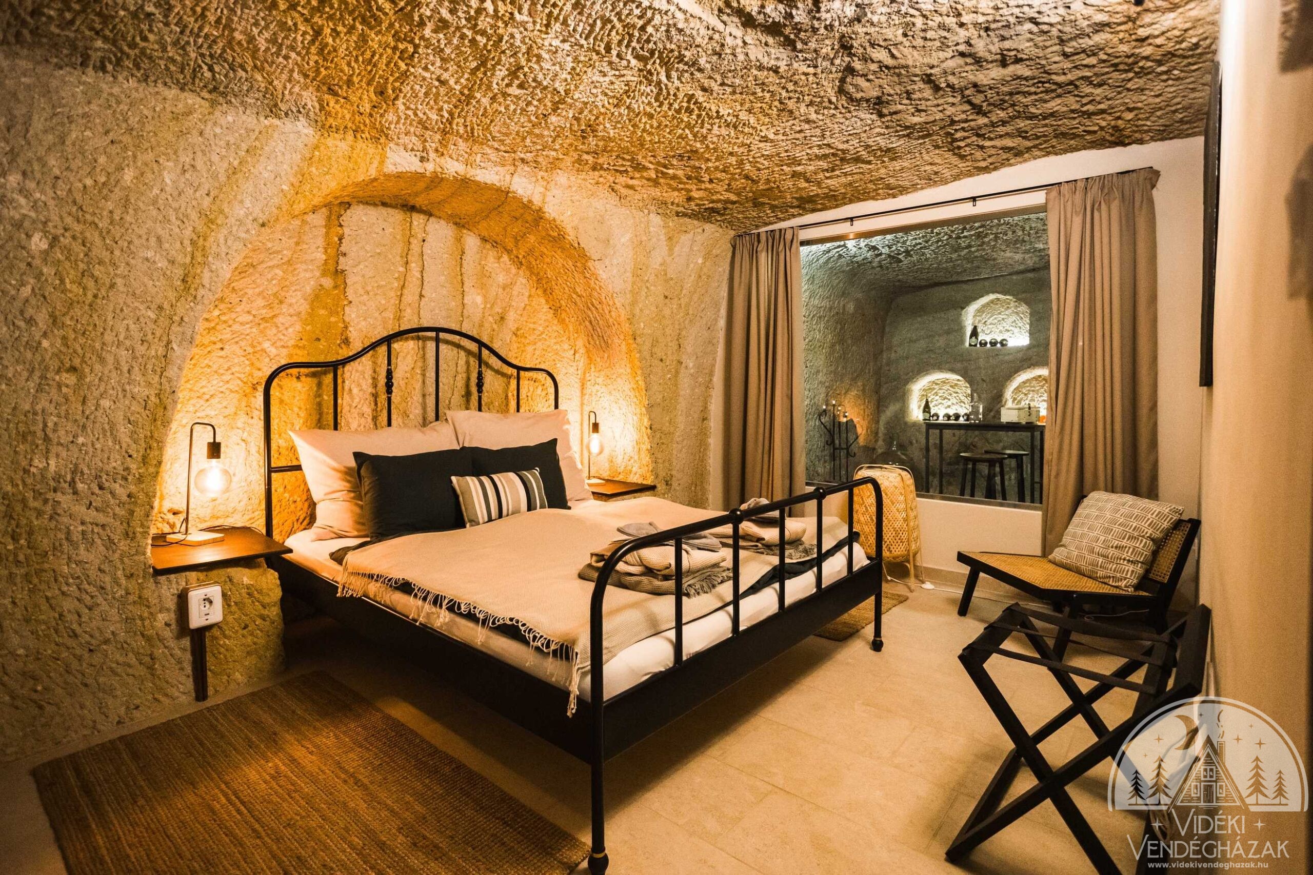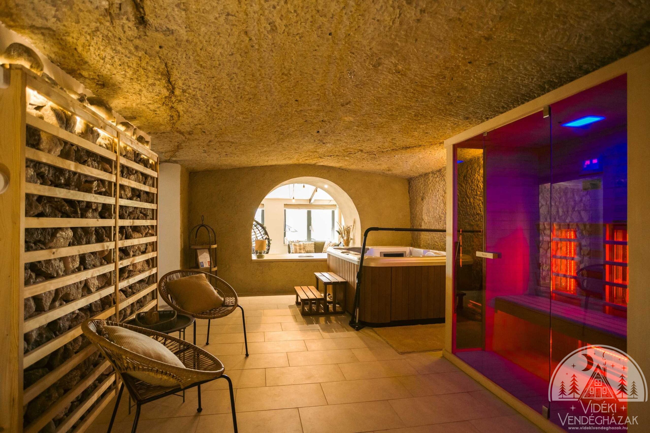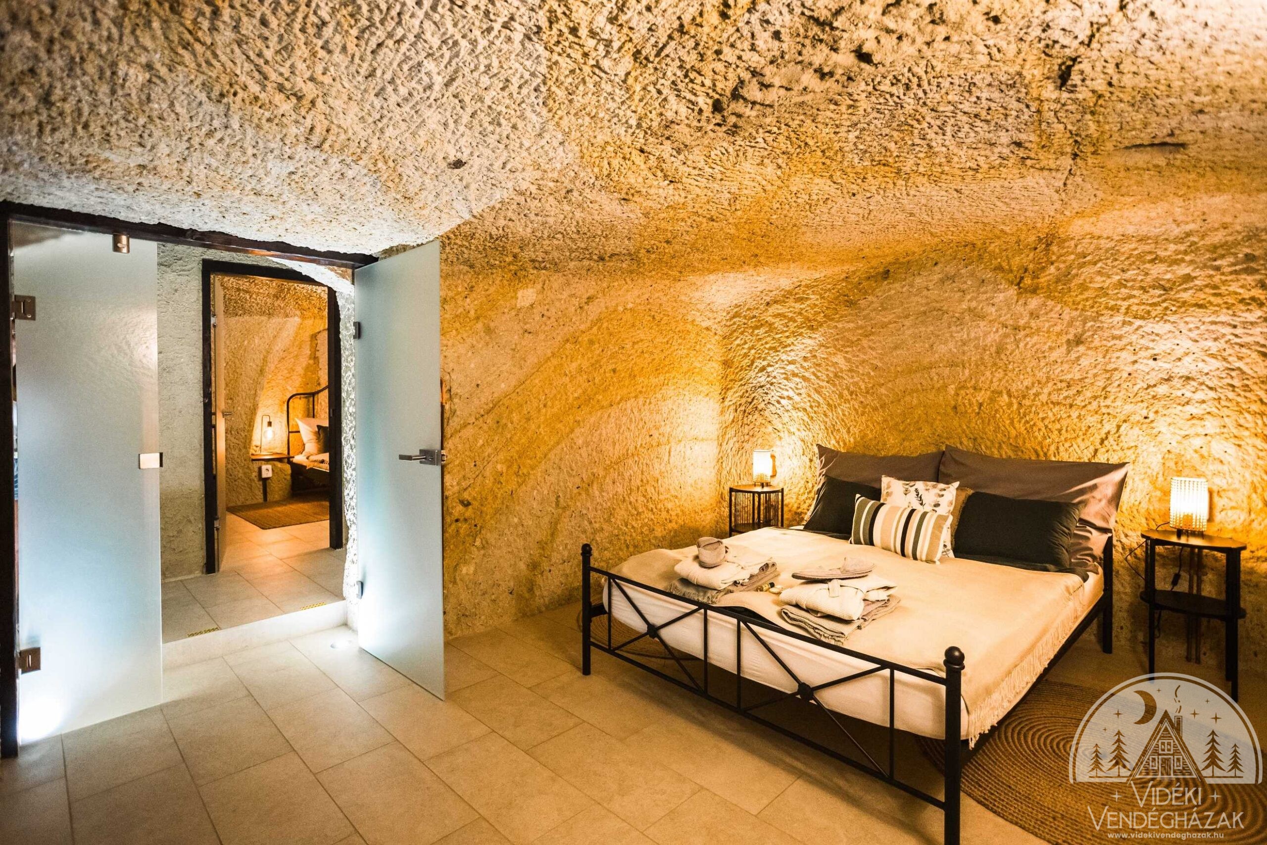 Vendégházunk 2 hálószobával rendelkezik, melyekhez egy zuhanyzós és egy káddal felszerelt saját fürdőszoba tartozik. Az egyik hálószoba érdekessége, hogy egy panoráma ablak választja el a hangulatos borospincétől, mely igazán egyedi hangulatot áraszt.