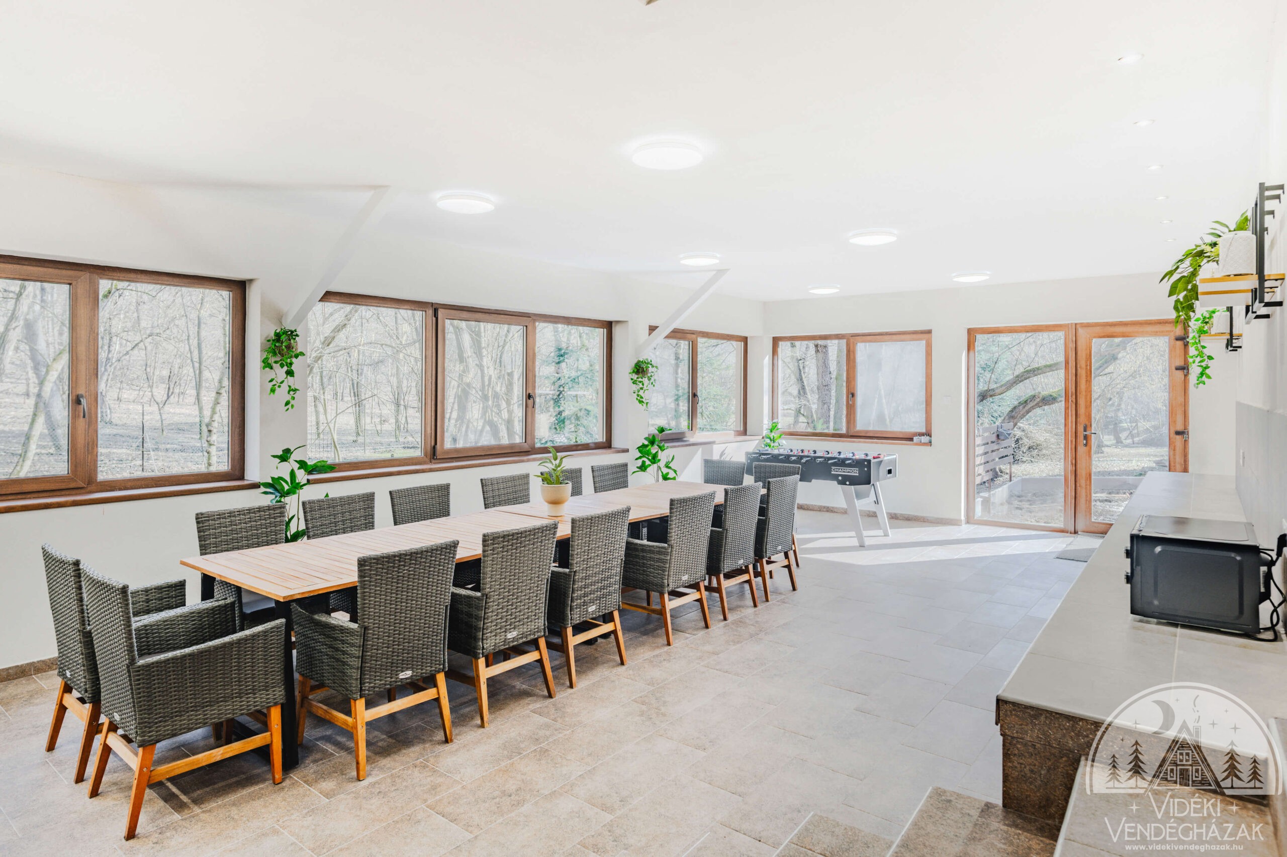 Ráadásul közvetlen szomszédságunkban található a Csodaszarvas Vendégház, így a két vendégház együtt akár 22 fő kényelmes elszállásolására is alkalmas. Nagyobb társaság? Családi rendezvény? Kisebb tréning? Megoldjuk – természetközeli környezetben, mégis teljes komforttal.
