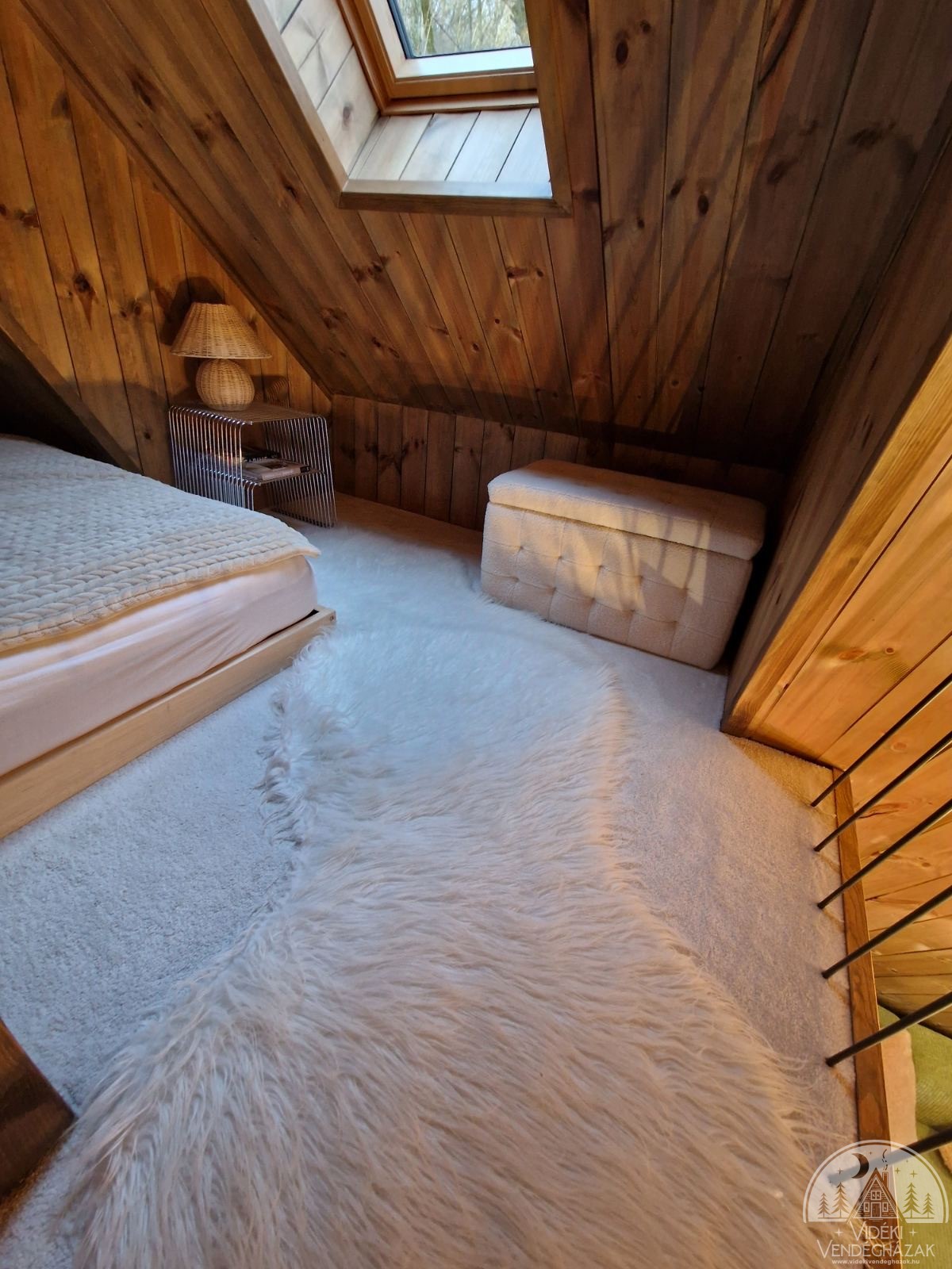 • 180×200 cm ágy a galérián, kanapéágy a földszinten, fekvőfelület: 110×190 cm