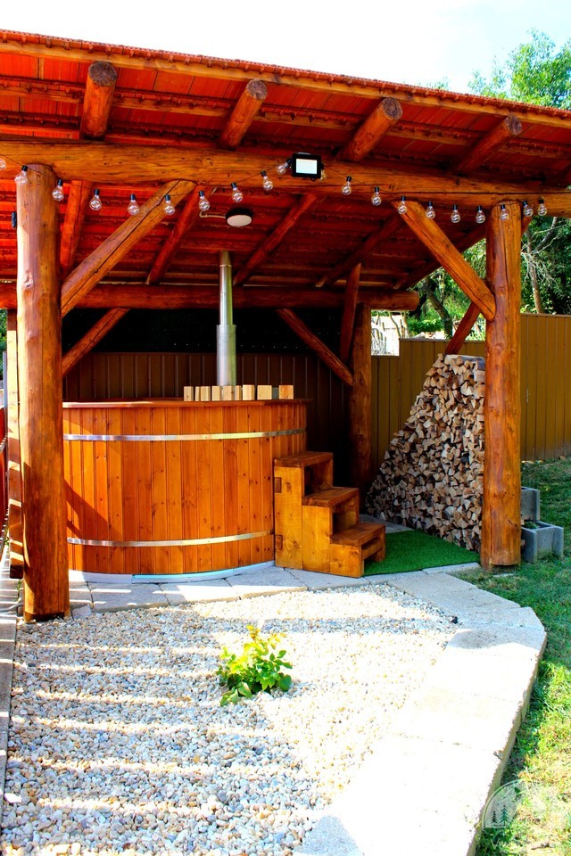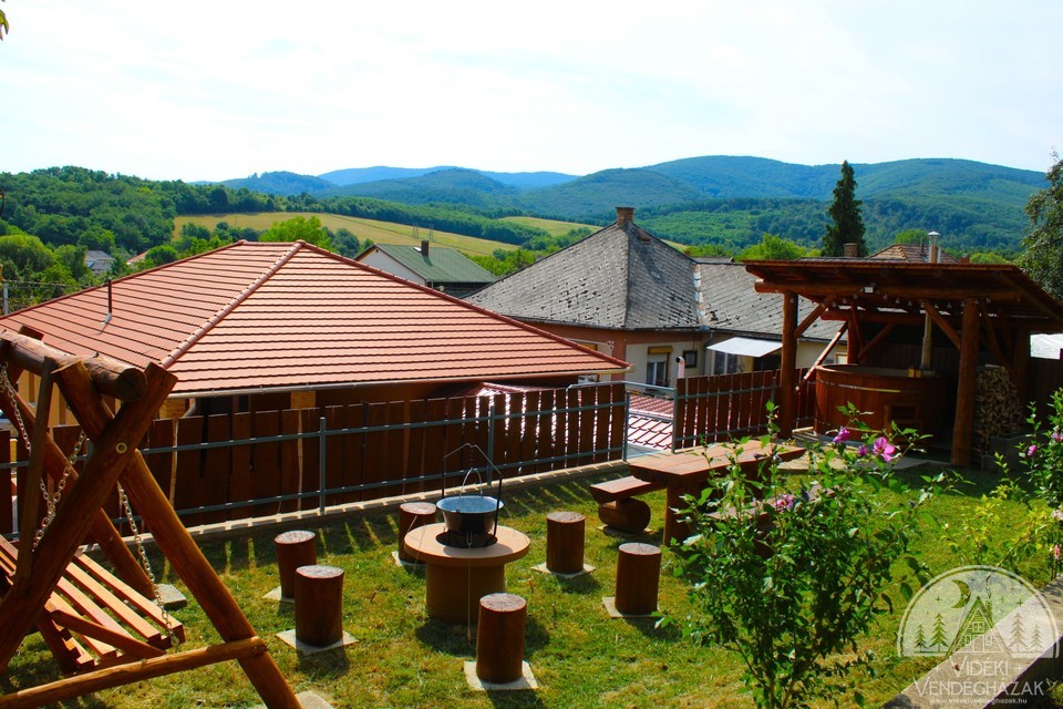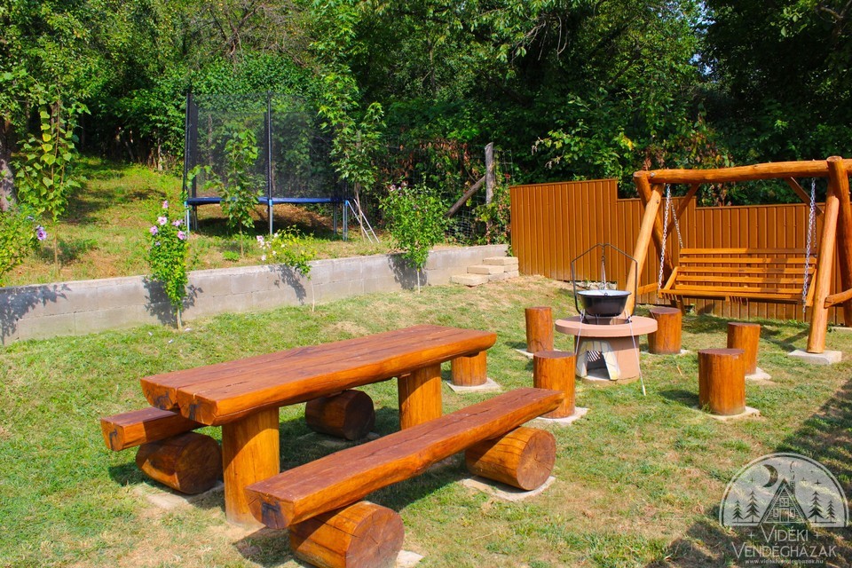 A kertben található 6 személyes dézsa fürdő, szalonnasütő, bográcsozó, hintaágy és egy trambulin.