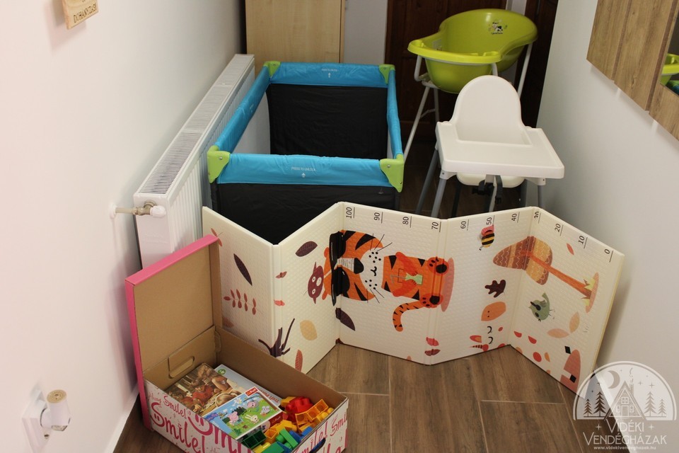 Bababarát vendégház. Igény esetén kiságyat (matraccal), babakádat és etetőszéket biztosítunk.