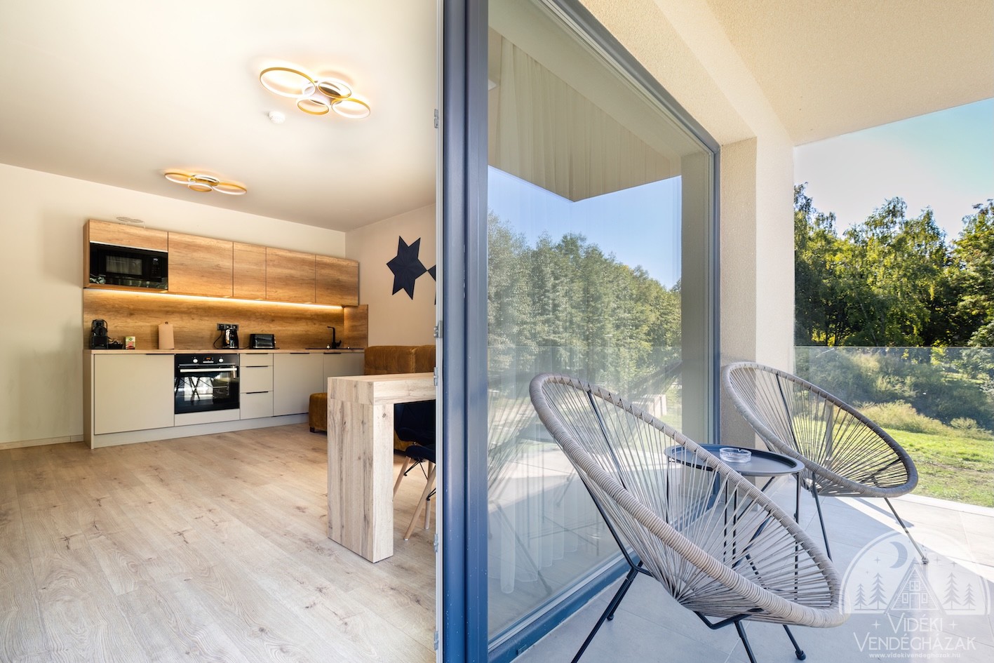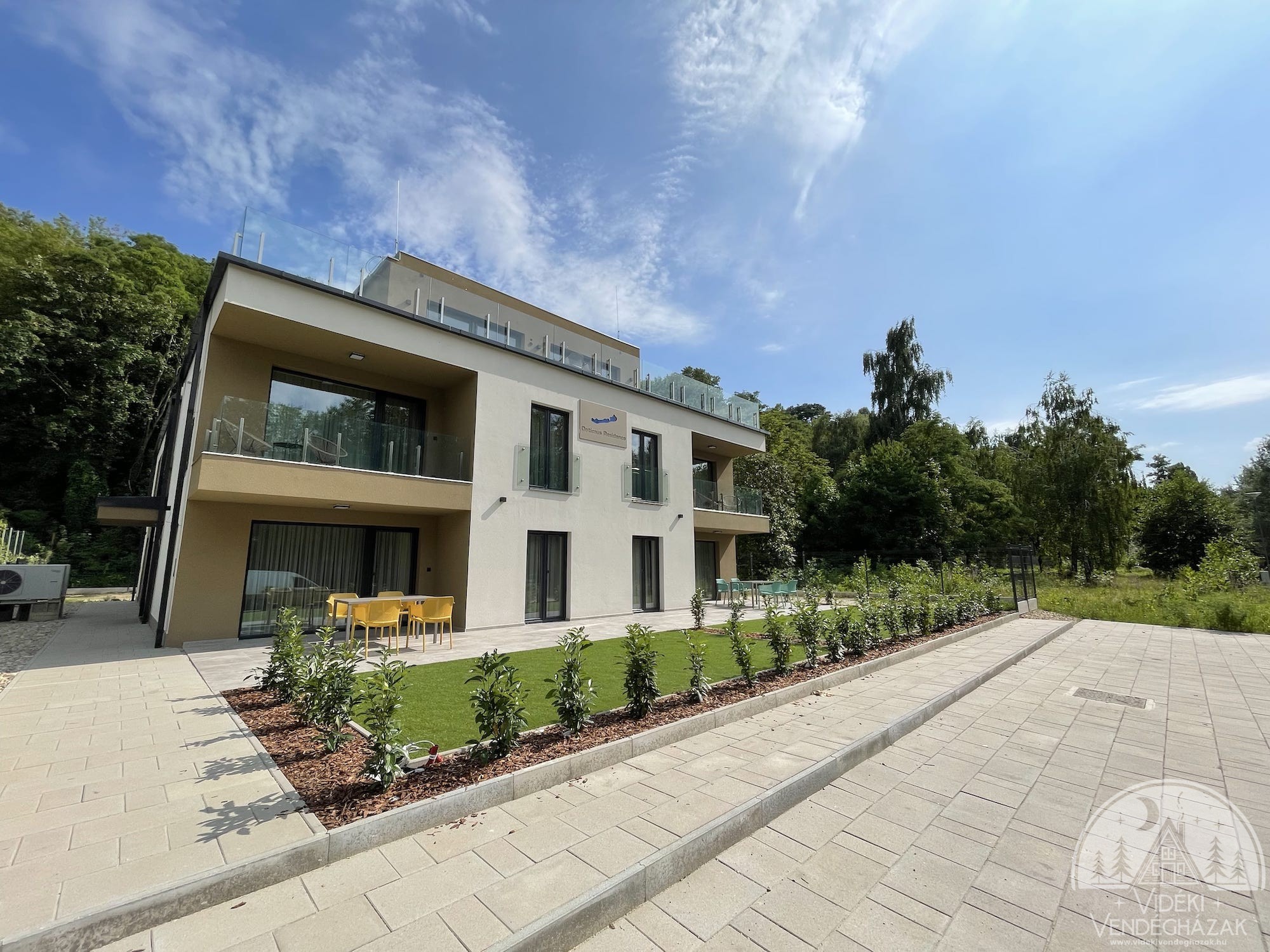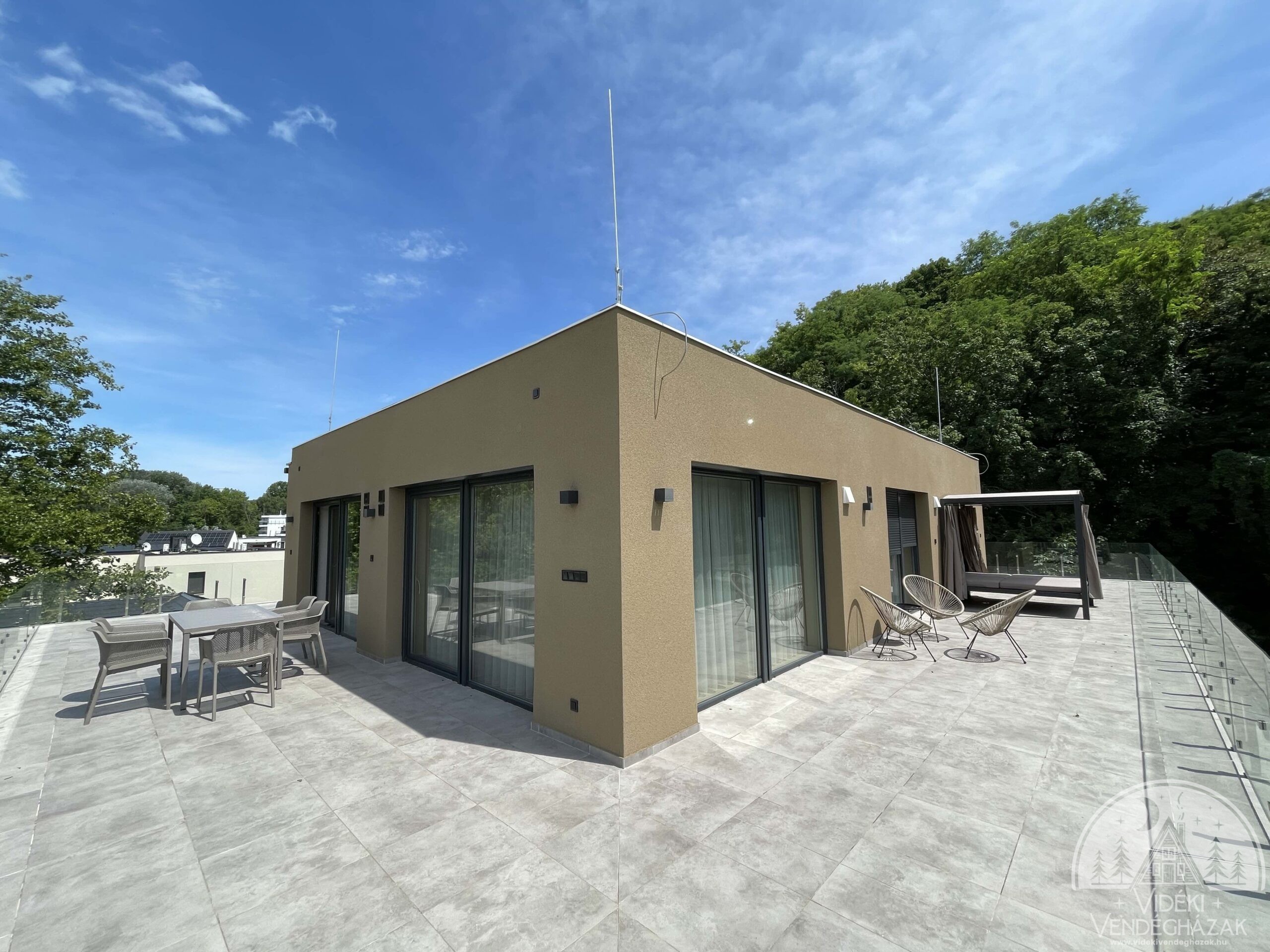 Minden apartmanunkhoz privát erkély vagy terasz tartozik. A kisebb méretű erkélyeken kültéri fotelek, a nagyobb teraszokon kültéri asztalok és székek állnak rendelkezésre. Két földszinti apartmanunk a terasz mellett privát kerttel is rendelkezik, amely ideálissá teszi a nagyobb teret szerető vendégeink, családok vagy baráti társaságok számára is. A Penthouse-hoz 200 négyzetméteres, részben balatoni panorámás, lombkorona szinten elhelyezkedő terasz tartozik, amelynek minden oldala csodálatos élményt nyújt.
