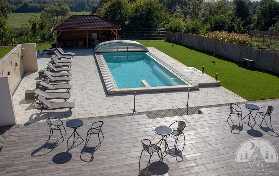 bogrács/sütögetés | felszerelt konyha | jakuzzi | kerékpárt biztosít | légkondi | medence kinti | saját kert | saját parkoló | sószoba | szauna | wellness | wifi