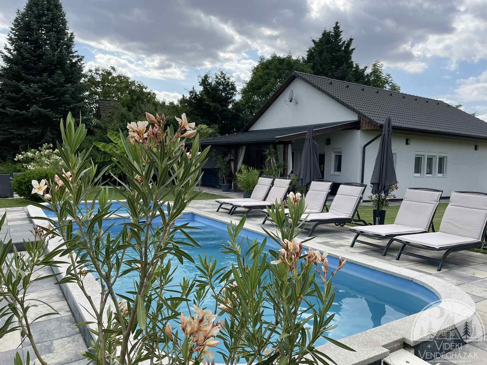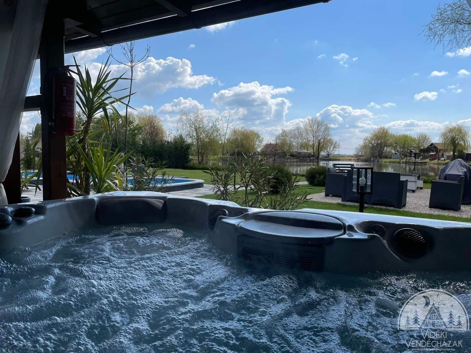 A ház 8 főnek biztosít ideális szállást. A házhoz tartozik egy 32nm-es fedett terasz, melyen vadonatúj 7 férőhelyes jacuzzi segíti a pihentető időtöltést, 6 fős finn szaunánk pedig gondoskodik a hűvös napok tartalmas eltöltéséről is. Parkosított kertünkben 8*3 méteres egybeépített gyermek és felnőtt medence, grillező, bográcsozó, gerenda játszótér és trambulin nyújt további élvezetet. Mindehhez 25m vízpart, 24nm móló, evezős csónak, SUP, vízibicikli társul, ezzel biztosítva a minőségi, teljes kikapcsolódást. Vendégeink rendelkezésére állnak továbbá felnőtt és gyermek kerékpárjaink, valamint a környéken egyedüliként elektromos autó (gyors)töltővel is felszereltük nyaralónkat.